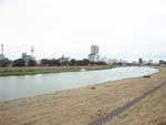 銭亀橋辺り。向かって右が東京側(南)土手が一様に枯れている。