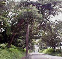松がいい感じである以外は、これといった史蹟はなし。 電柱も一応、茶色く塗ってある。でも標識の類はどうにかならないのか? 戻る