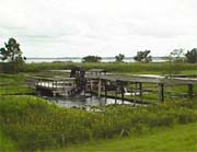 風車内で霞ヶ浦の水をろ過してここに流している。