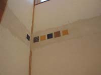 | 下地は石膏ボード。タイルを事前に貼っておいて、間を埋めていく。 | ||||||||||||||||