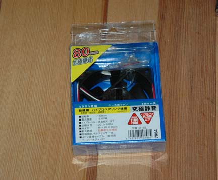 自作コーナーのファン。8センチ角で1400円。電源コネクターはマックのと全然あいません。 | |||||||||
