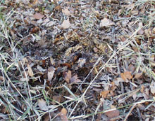 自然にできた腐葉土。この林にも色々な生命の営みがありました。 |